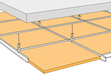 Disse paneler, med deres specielle kanter, placeres i T-metalprofiler, der dækker panelernes struktur og skaber en smidig og sammenhængende loftoverflade. Denne metode giver et elegant design uden synlige skruer eller t-profiler og bidrager til et mere sofistikeret udseende, der kan virke inspirerende og ligefrem magtfuldt.